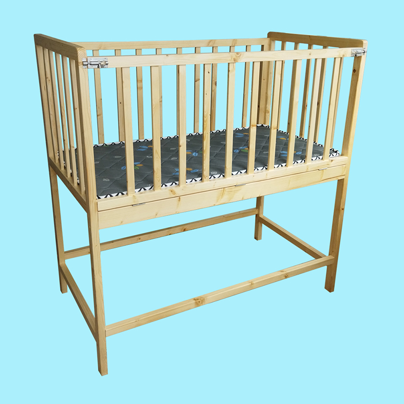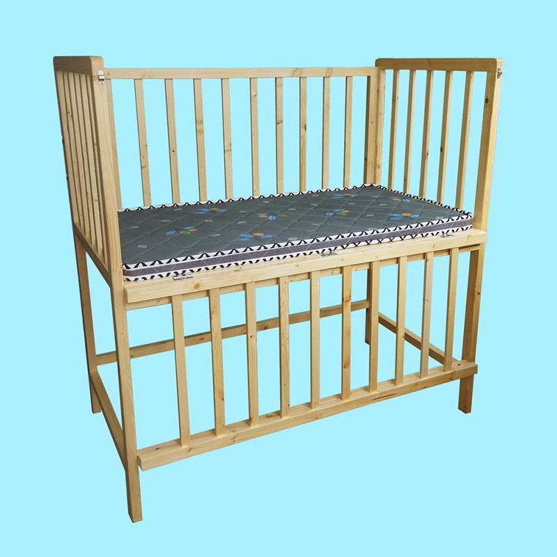 長140cm,寬77cm,高143cm,欄高63cm。一側護欄可開合,配備床墊。